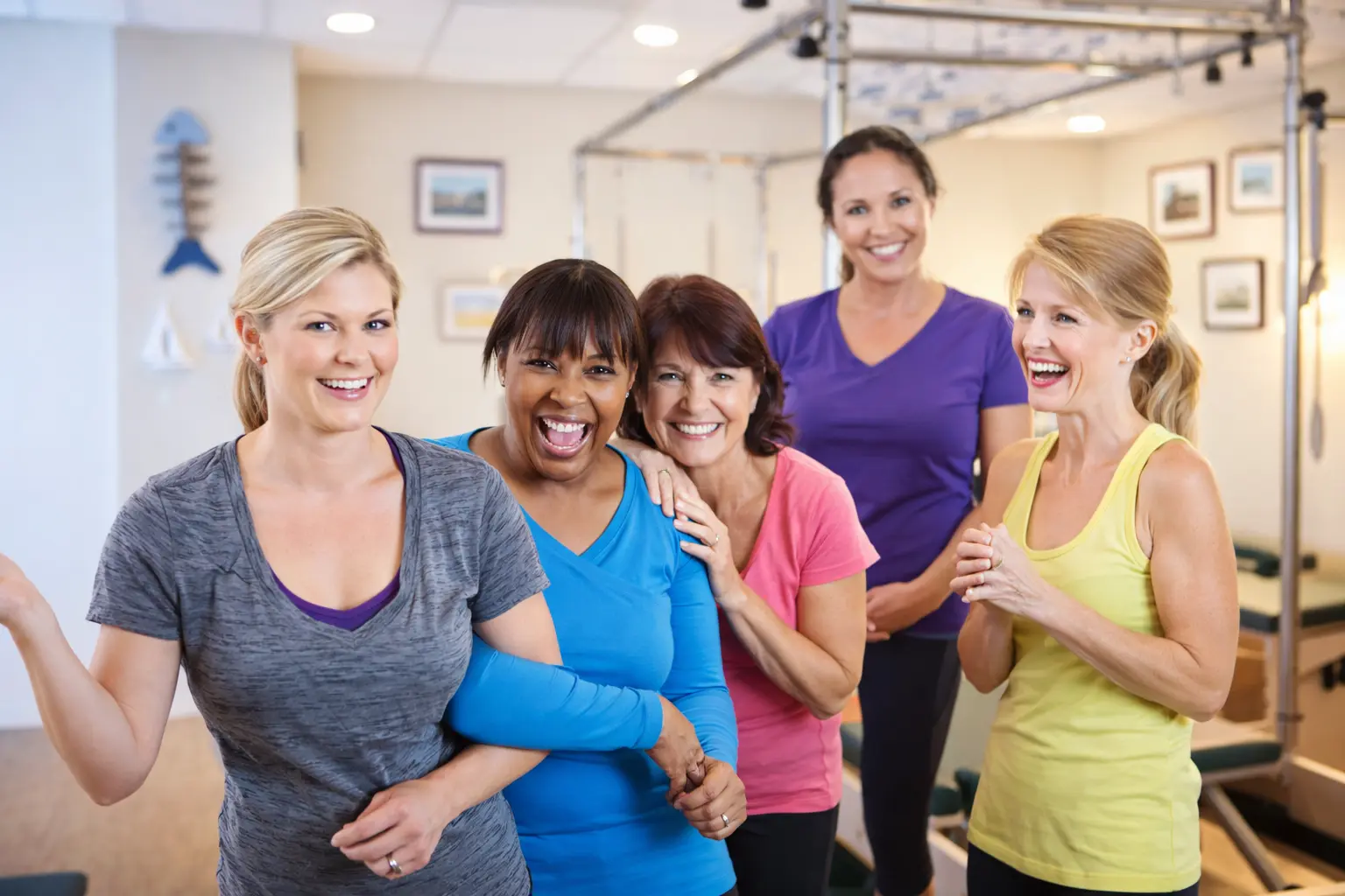Just wear comfortable workout clothes. We provide all equipment, mats, and props you'll need.